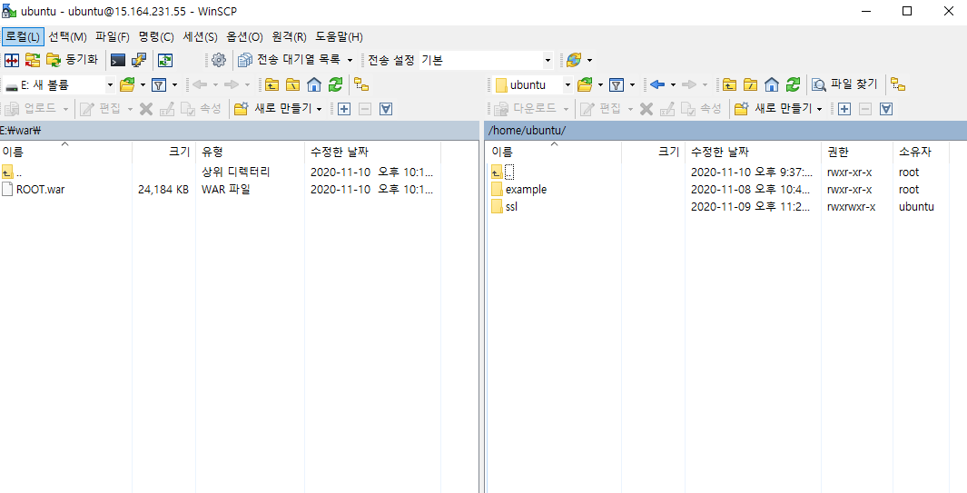 war파일을 성공적으로 만들었다면 그 파일을 ubuntu server에 전송해야한다.