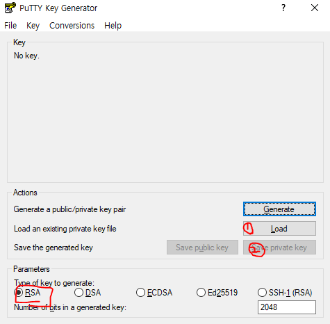 제일먼저 ec2 인스턴스에 접속하기 위해서 pem키를 ppk로 바꾸어 주어야 하는데 PuTTYgen을 이용한다.