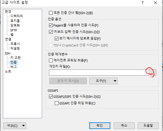 그후 위에서 생성한 개인키 파일을 설정해 준다.